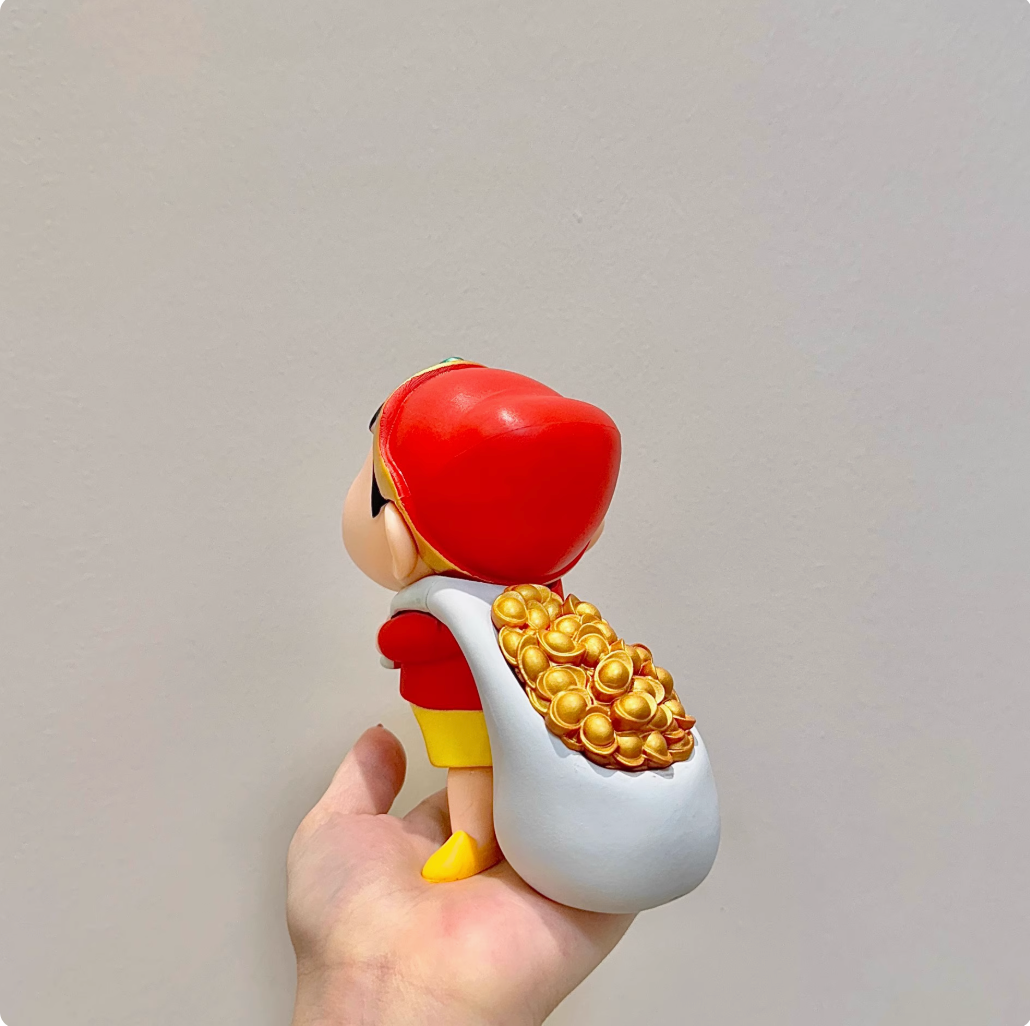 This hand-crafted Shin-chan doll is a perfect gift for any special occasion. With intricate detailing and two gold ingot accessories, this ornament is sure to impress. Display it on any entrance table as a charming addition to your decor. AA11 model.